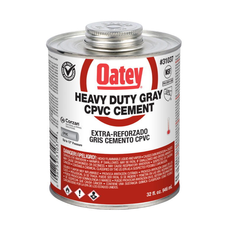 Le ciment gris à prise moyenne Oatey® CPVC Heavy Bodied est recommandé pour les systèmes commerciaux d’eau chaude et d’eau froide jusqu’à 93 °C / 200 °F. Formulé pour être utilisé sur tous les calendriers et classes de tuyaux et raccords en PVCC jusqu’à 12 po de diamètre avec ajustement serré. Les produits Oatey ont gagné la confiance des professionnels de la plomberie depuis plus de 100 ans.