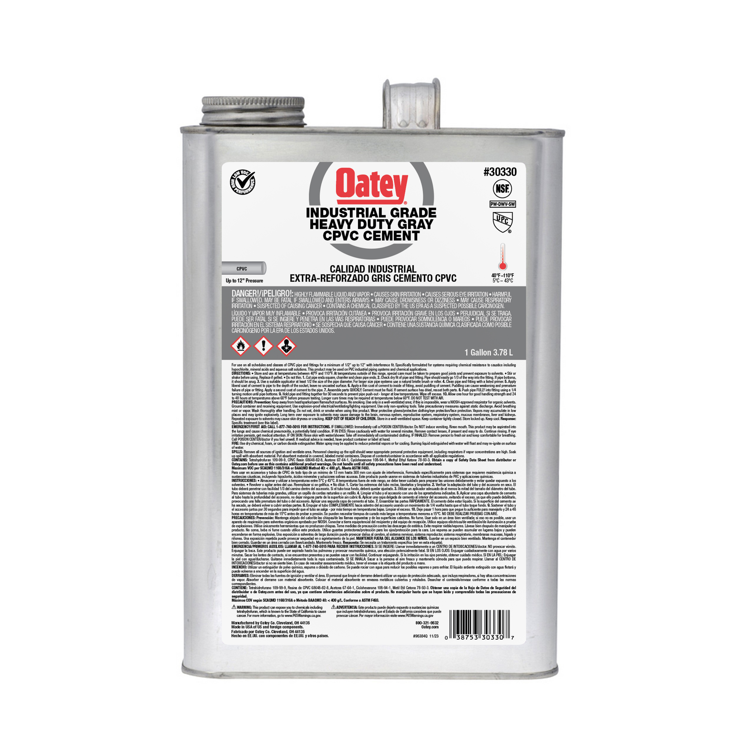 Le ciment CPVC gris de qualité industrielle Oatey® est recommandé pour les applications nécessitant une résistance chimique aux caustiques, y compris l’hypochlorite, les acides minéraux et les solutions salines aqueuses. Il peut être utilisé avec tous les matériaux PVC et CPVC, y compris les systèmes de tuyauterie Corzan® CPVC, et est facile à appliquer grâce à la loupe incluse dans le couvercle. Son indicateur UV permet d’inspecter rapidement et facilement les joints à sec à l’aide de n’importe quelle source de lumière ultraviolette. Cette colle grise à faible teneur en COV et à corps épais peut être utilisée pour souder au solvant des tuyaux et raccords en CPVC des classes 40 et 80 et des tuyaux et raccords en PVC jusqu’à 12 pouces de diamètre, ainsi que d’autres classes et classes avec ajustement serré. Il résiste aux caustiques et aux hypochlorites jusqu’à une solution de 15 %. Consultez le tableau de résistance chimique de l’EP 42 pour connaître la compatibilité avant de l’utiliser avec des solutions chimiques. Les produits Oatey ont gagné la confiance des professionnels de la plomberie depuis plus de 100 ans.