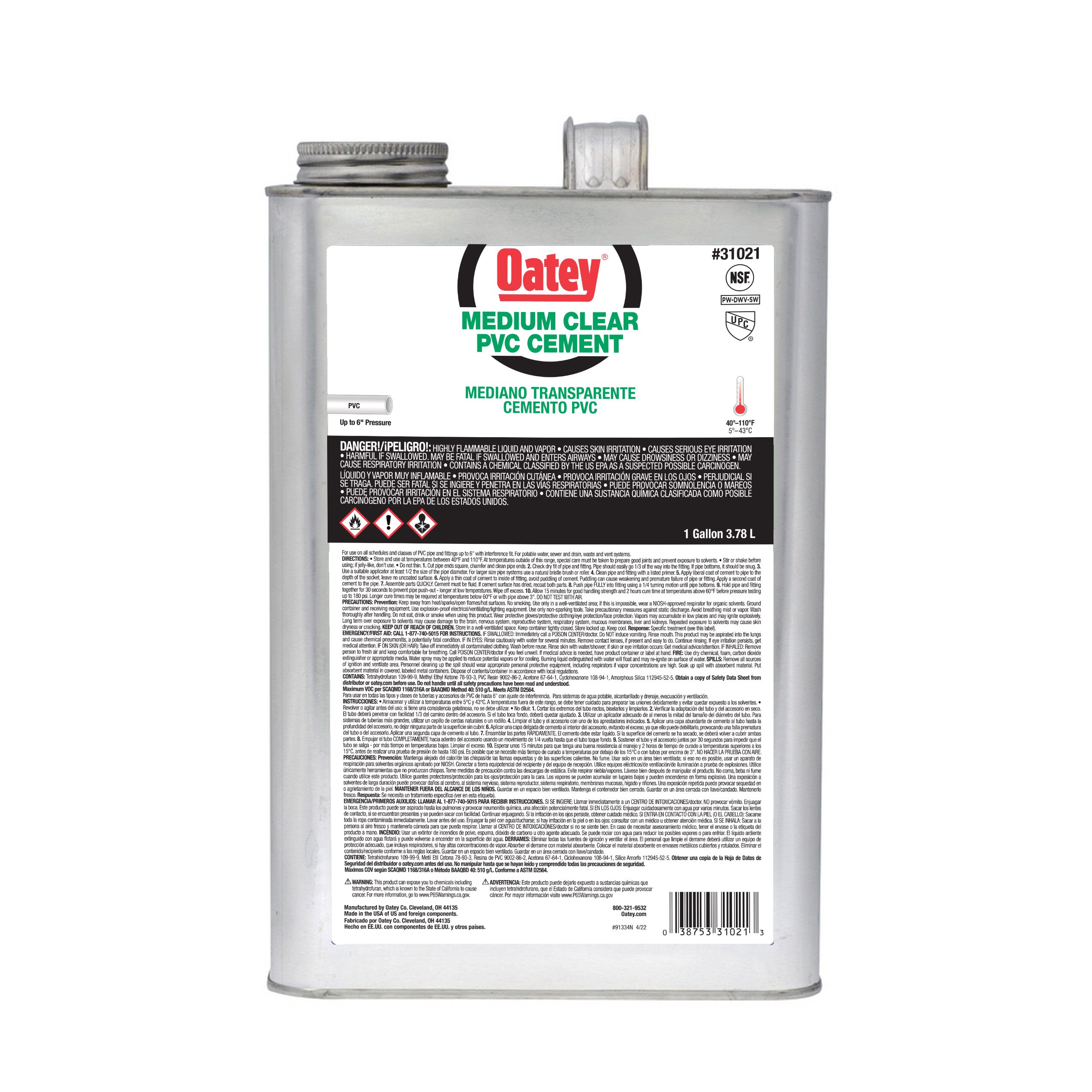 Oatey® PVC Medium Bodied Fast Set Clear Cement est recommandé pour les applications DWV, les tuyaux sous pression, l’eau potable et l’électricité. Son corps moyen a d’excellentes propriétés de remplissage des espaces et est facile à appliquer à l’aide de la pipette incluse dans le couvercle. Cette colle claire à prise rapide peut être utilisée pour souder au solvant tous les programmes et classes de tuyaux et raccords en PVC jusqu’à 6 pouces de diamètre avec ajustement serré. Les produits Oatey ont gagné la confiance des professionnels de la plomberie depuis plus de 100 ans.